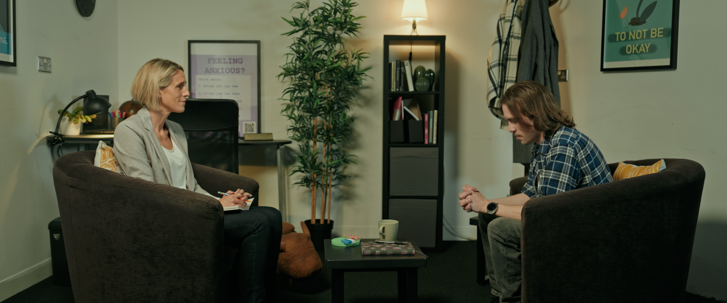 After turning in his fourth late assignment, Sam is sent to his university's counsellor, Dr Miller. Struggling to focus and sit still, Sam reveals how his love for music and all things practical was neglected by his parents, who eventually pushed him into theoretical subjects he can't excel in. When the counsellor suspects he has ADHD, Sam reveals that he sometimes feels all his annoying impulses could be best described as an irritating "shadow"; a loud, brightly-dressed version of himself who never leaves him alone. She then asks Sam to recount the day when the "Shadow" led him through London, prioritising trivial tasks over his assignment, ultimately leading him to not hand it in on time.